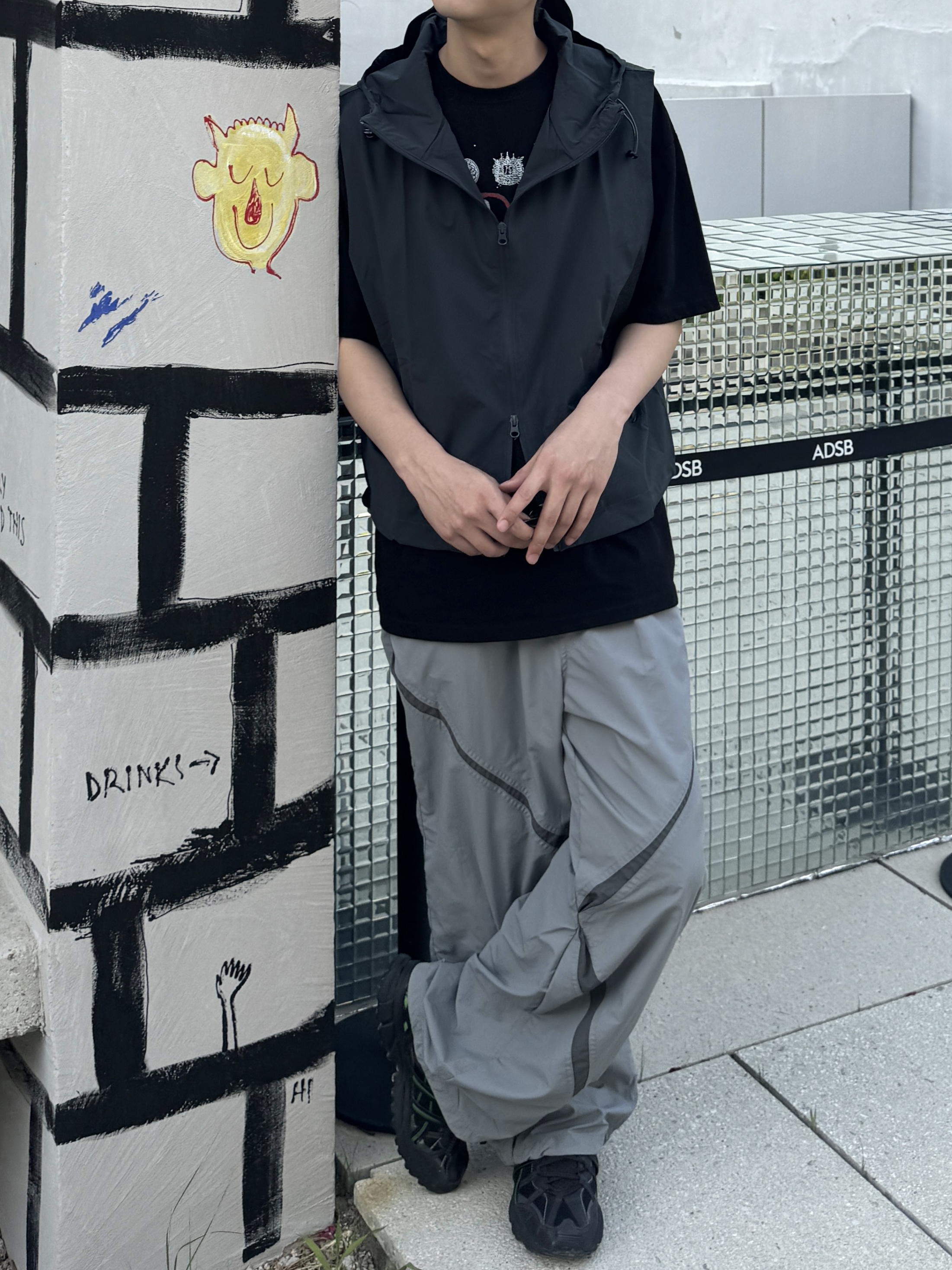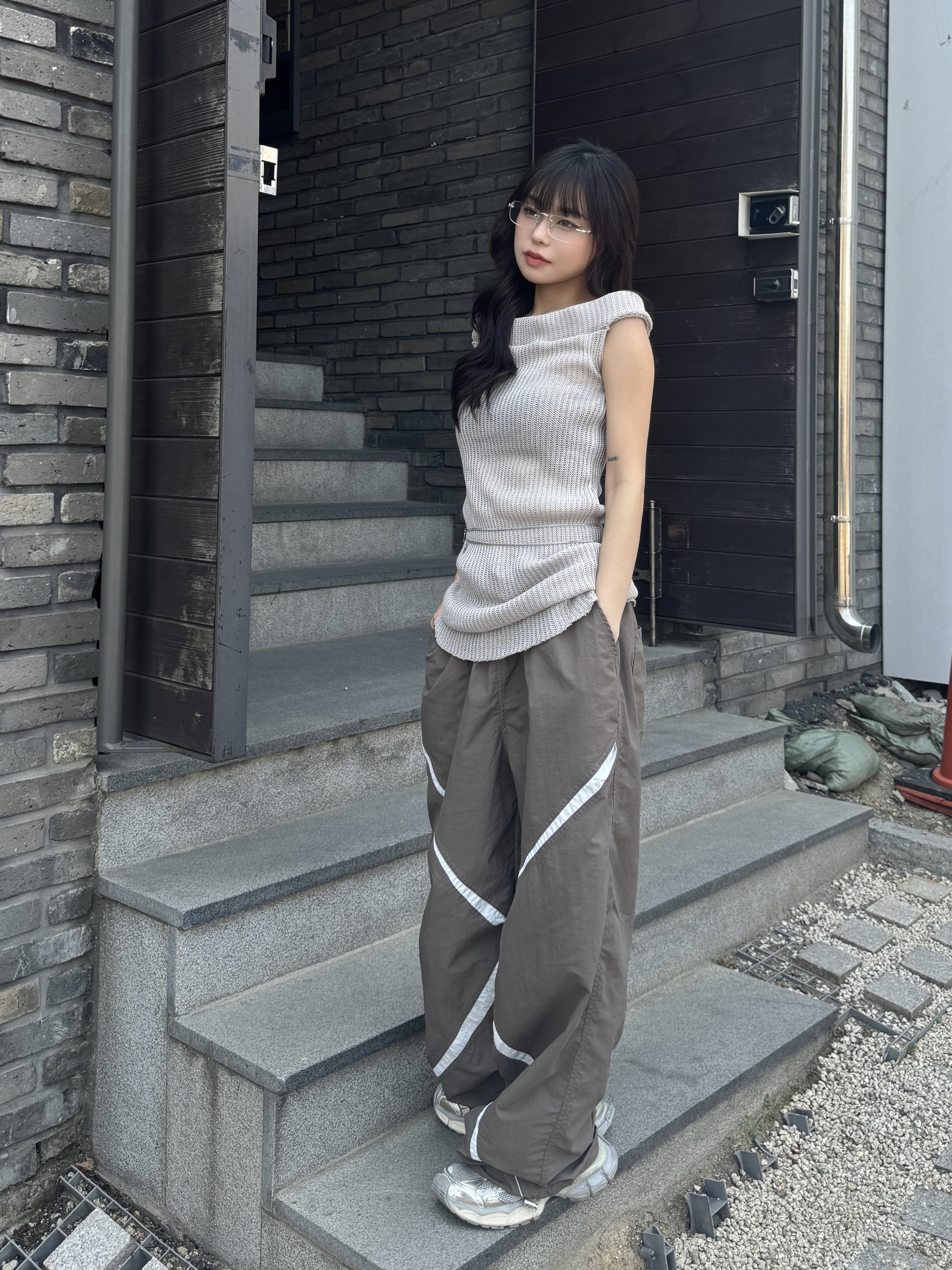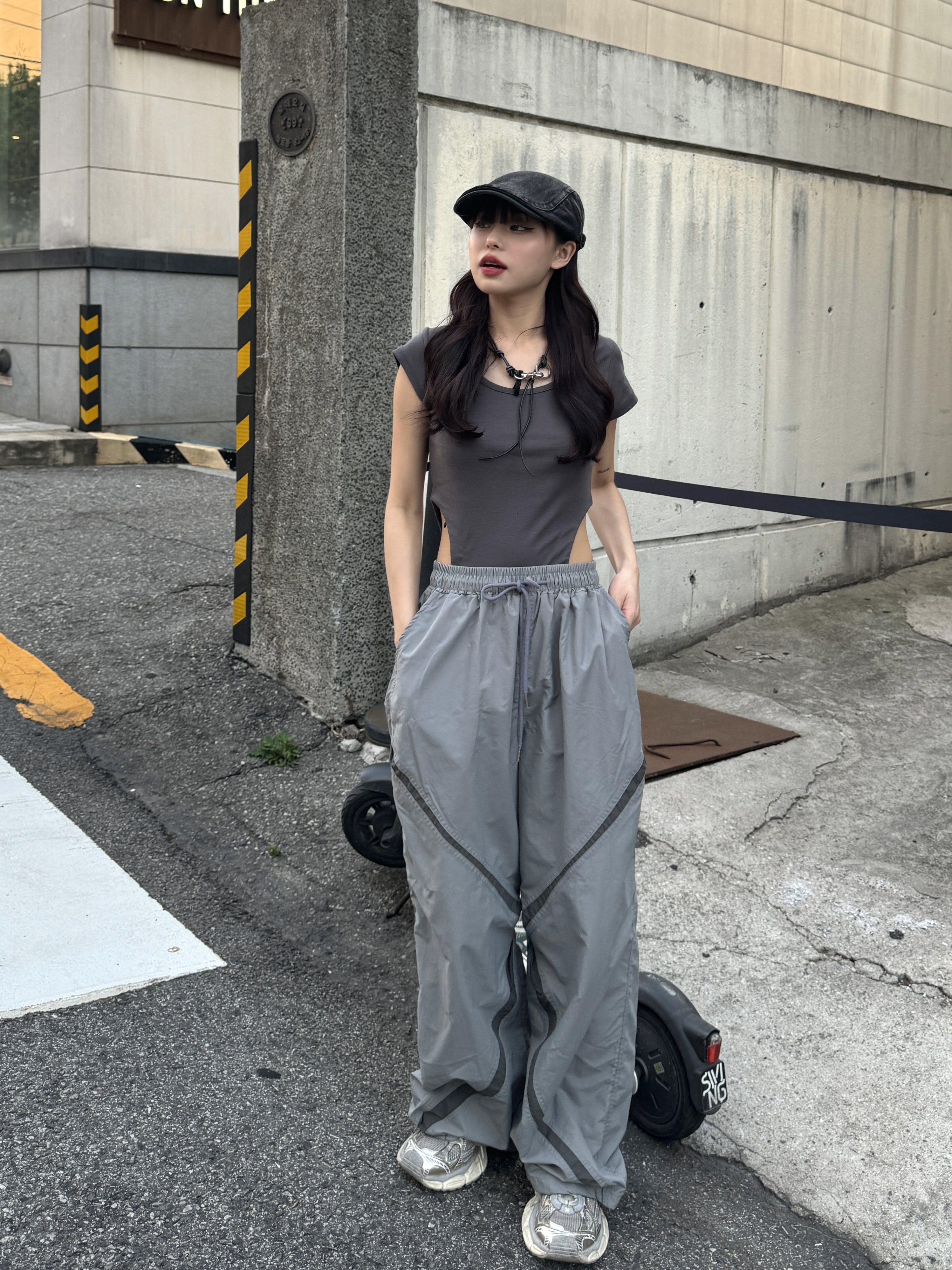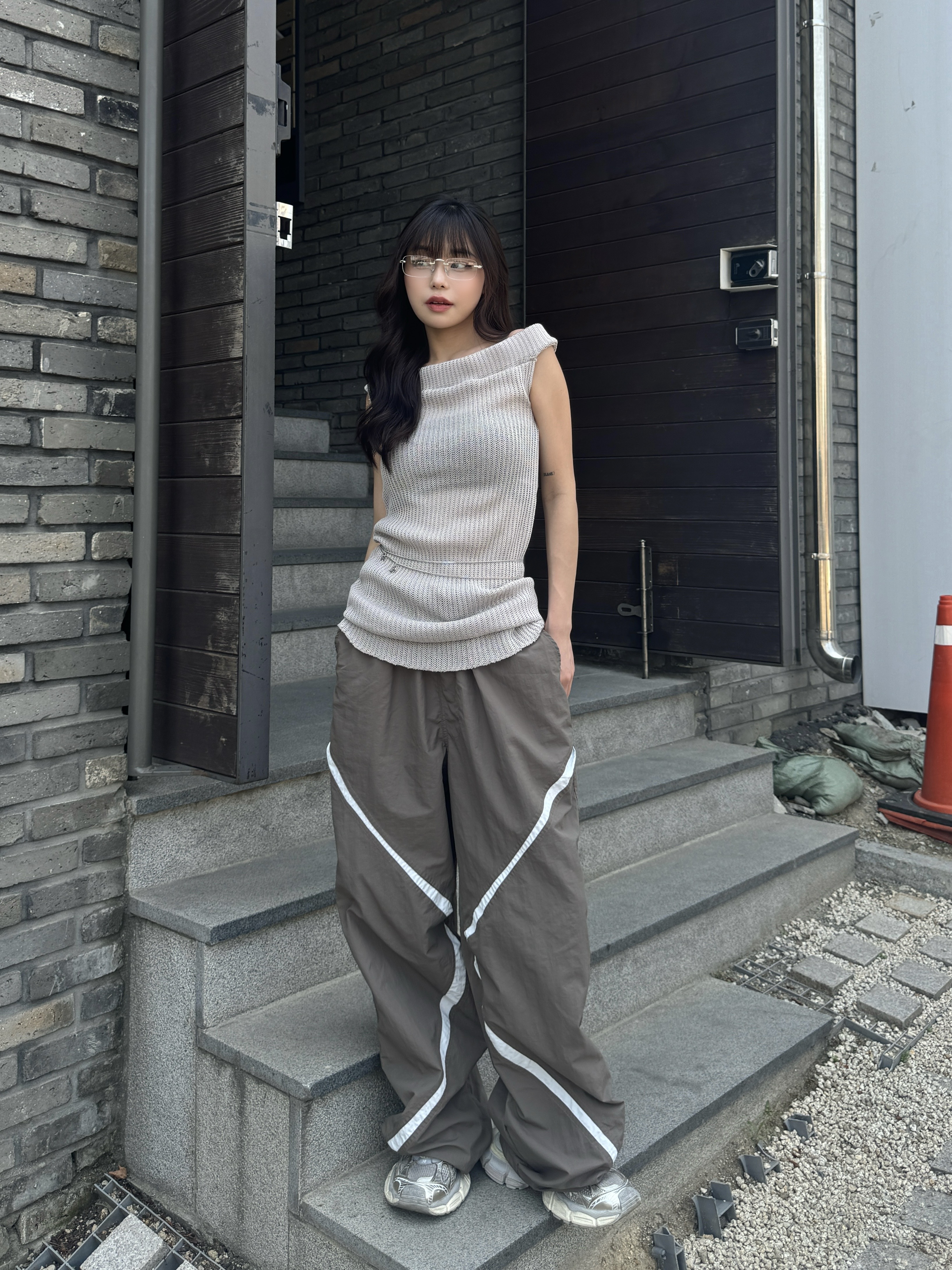 rush cross 撞色剪裁尼龍褲(3color)